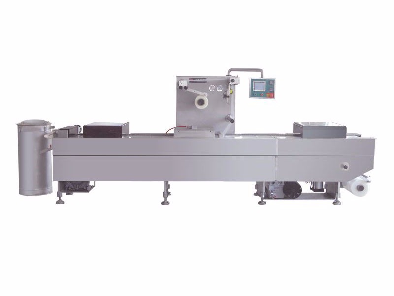 全自動真空包裝機(jī)使得食品行業(yè)產(chǎn)品保質(zhì)期加長,因為普遍采用的是真空包裝,各種熟制品如雞腿、火腿、香腸、烤魚片、牛肉干等;腌制品如各種醬菜以及豆制品、果脯等各種各樣需要保鮮的食品越來越多地采用真空包裝。經(jīng)過真空包裝的食品保鮮期長,大大延長食品的保質(zhì)期。全自動真空包裝機(jī)是通過下膜拉伸成型,然后將包裝物裝入成型了的下膜腔中,接著在封合箱中對包裝物進(jìn)行真空或真空充氣,并將上膜與下膜熱合,再通過橫切、縱切將包裝物進(jìn)行分割,最后包裝的成品輸送到下一工序,余下的廢膜料由收集器收回。使用時衛(wèi)生、高效、節(jié)省人工,而且成本較低。適合于冷凍分割肉、冷卻肉、肉制品、豆制品、海產(chǎn)品、休閑食品、醫(yī)藥產(chǎn)品、醫(yī)療器械、電子元件、五金工具等行業(yè)產(chǎn)品的真空或氣調(diào)包裝,這種包裝已成為今后食品包裝的潮流。 全自動真空包裝機(jī)整機(jī)采用硬質(zhì)鋁合金及不銹鋼材料,提高了設(shè)備的抗腐蝕性;采用組合模具,更換方便,一機(jī)多用,模具備有水冷卻功能;采用性能穩(wěn)定,使用壽命長的SMC氣動元件;選用極限真空度高,性能卓越的品牌真空泵;選用性能可靠,操作便捷的伺服電機(jī),PLC和觸摸屏及施耐德電氣控制;采用光電跟蹤,可選用彩蓋膜或光膜進(jìn)行包裝,降低成本,提高產(chǎn)品檔次;可根據(jù)需要,配備自動打碼系統(tǒng);采用特殊不銹鋼夾持鏈條,適用于各種厚度的軟膜、硬膜拉伸成型,進(jìn)行特殊包裝;采用先進(jìn)的橫切縱切系統(tǒng),更換操作方便,備有邊角廢料回收系統(tǒng),保持環(huán)境衛(wèi)生;可以選擇方盒、圓盒或其它異形盒。盒子的尺寸可根據(jù)客戶產(chǎn)品定做膜具。全自動真空包裝機(jī)實現(xiàn)自動控制的包裝系統(tǒng)能夠極大地提高生產(chǎn)效率和產(chǎn)品質(zhì)量,顯著消除包裝工序及印刷貼標(biāo)等造成的誤差,有效減輕職工的勞動強(qiáng)度并降低能源和資源的消耗。具有革命意義的自動化改變著包裝機(jī)械行業(yè)的制造方法及其產(chǎn)品的傳輸方式。設(shè)計、安裝的自動控制包裝系統(tǒng),無論從提高包裝機(jī)械行業(yè)的產(chǎn)品質(zhì)量和生產(chǎn)效率方面,還是從消除加工誤差和減輕勞動強(qiáng)度方面,都表現(xiàn)出十分明顯的作用。尤其是對食品、飲料、藥品、電子等行業(yè)而言,都是至關(guān)重要的。