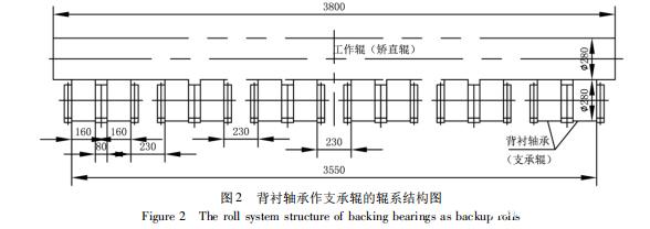 某鋼廠3800 mm熱矯直機直接采用背襯軸承作支承輥的輥系結構簡圖,見圖2。